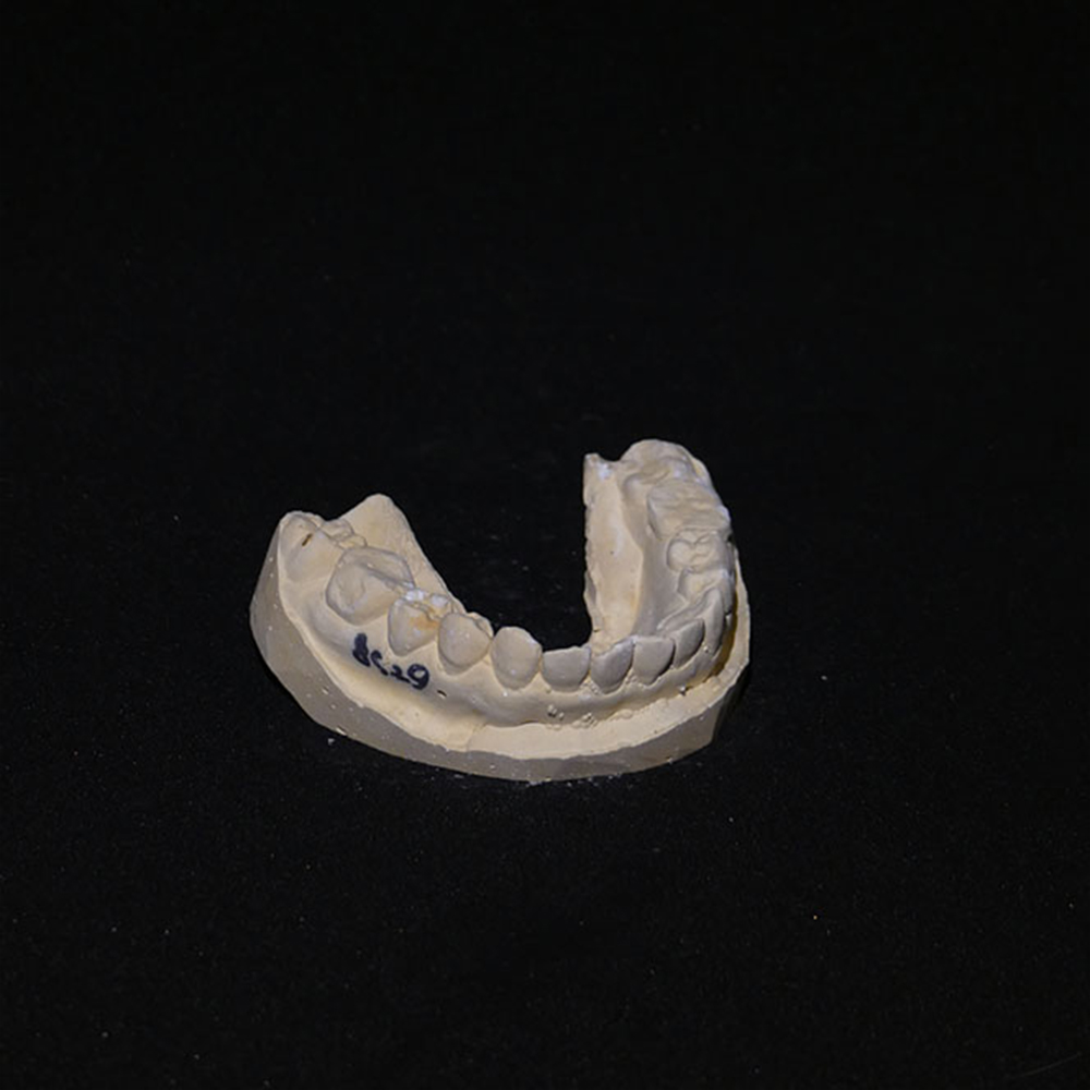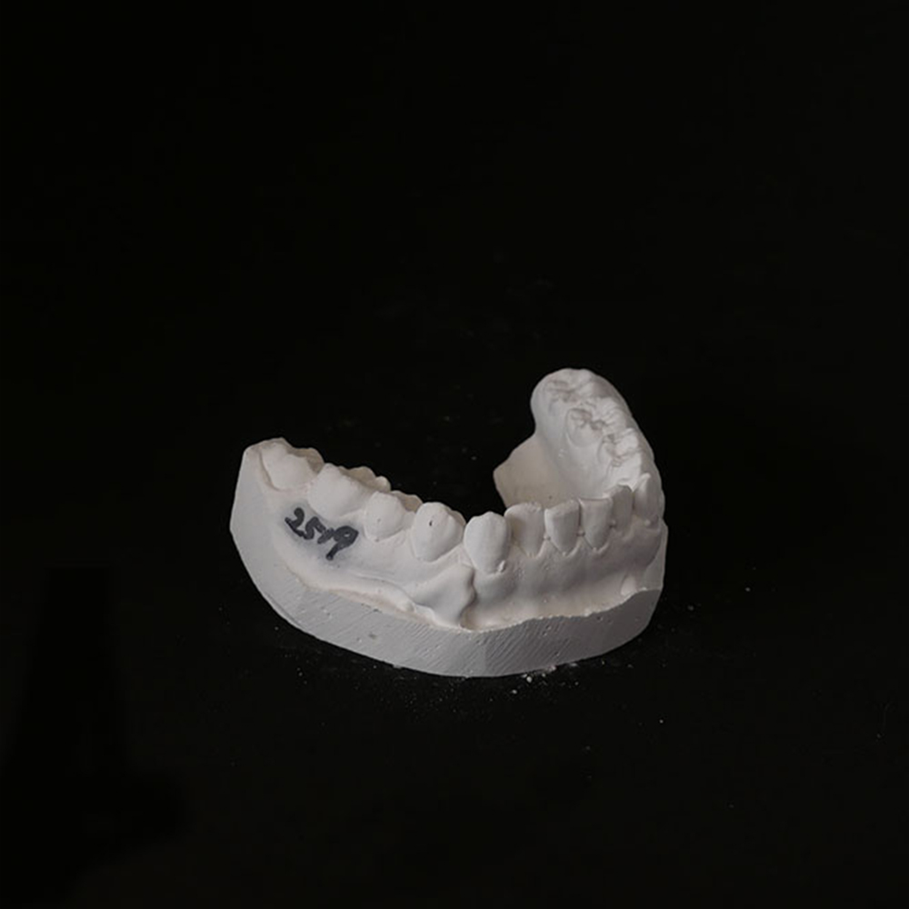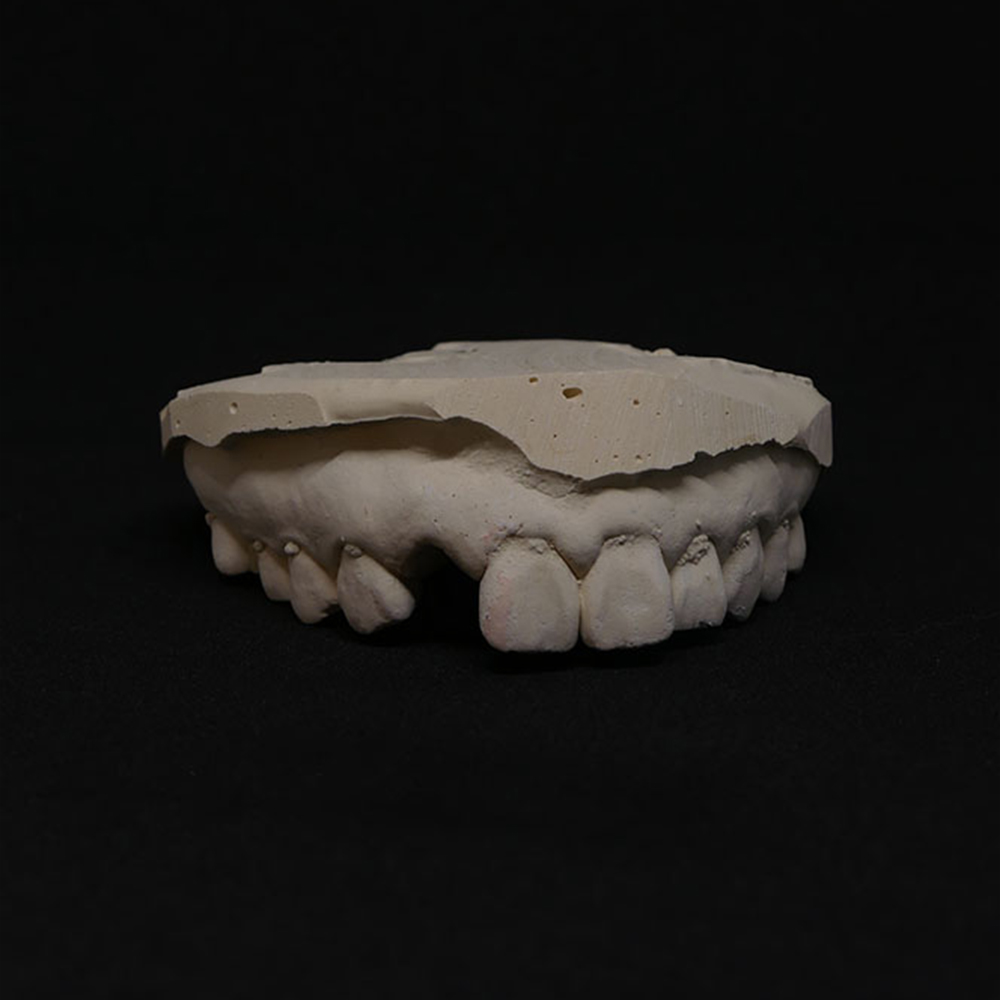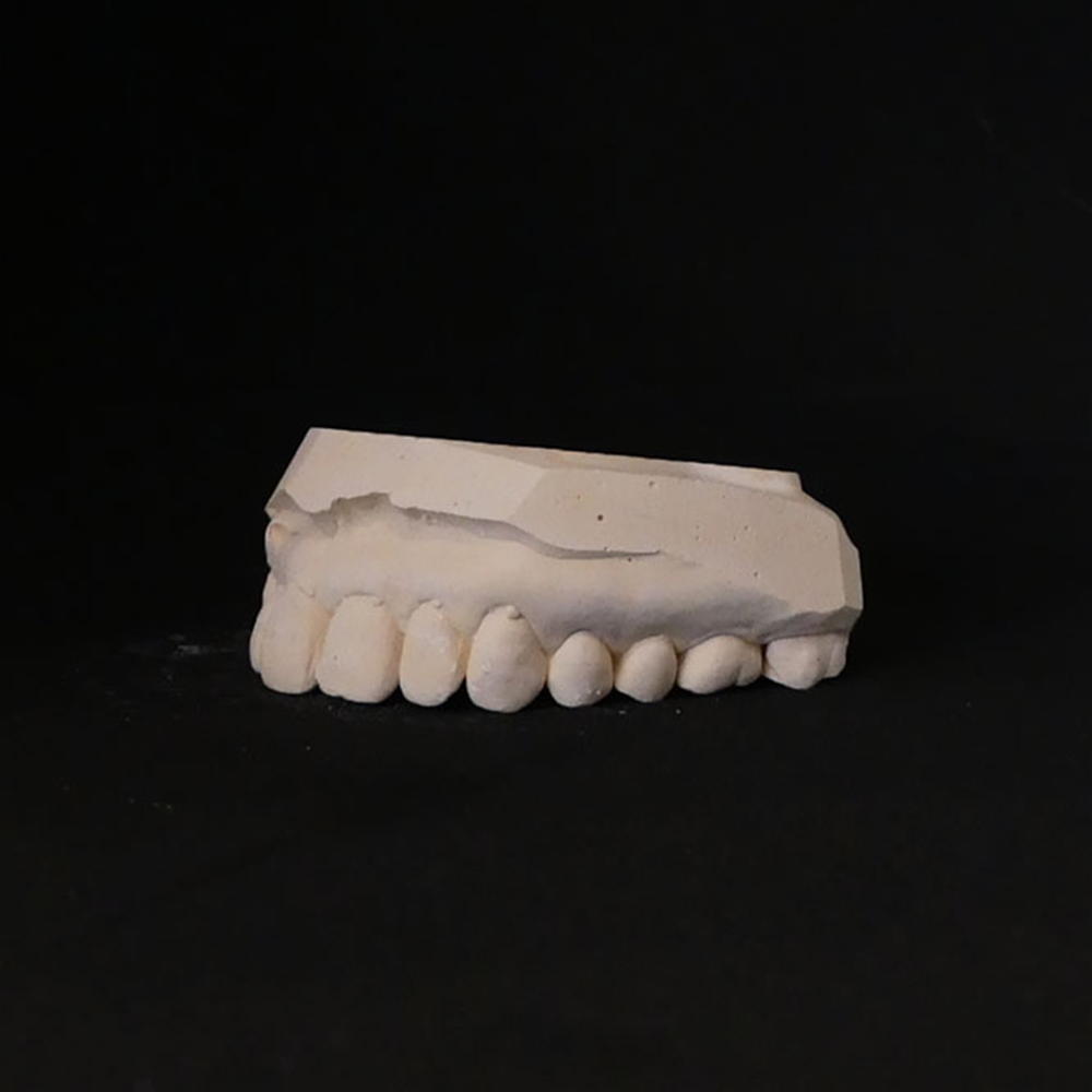 歯科助手のアルバイトをしていた時に歯医者のゴミ箱から知らない人の歯が複製された模型を拾い、それをまた写真という形で新たに複製する。それに対して映像作品では、動画では模型を使って歯の被せ物が作られる工程が一つ一つ見せられていく。