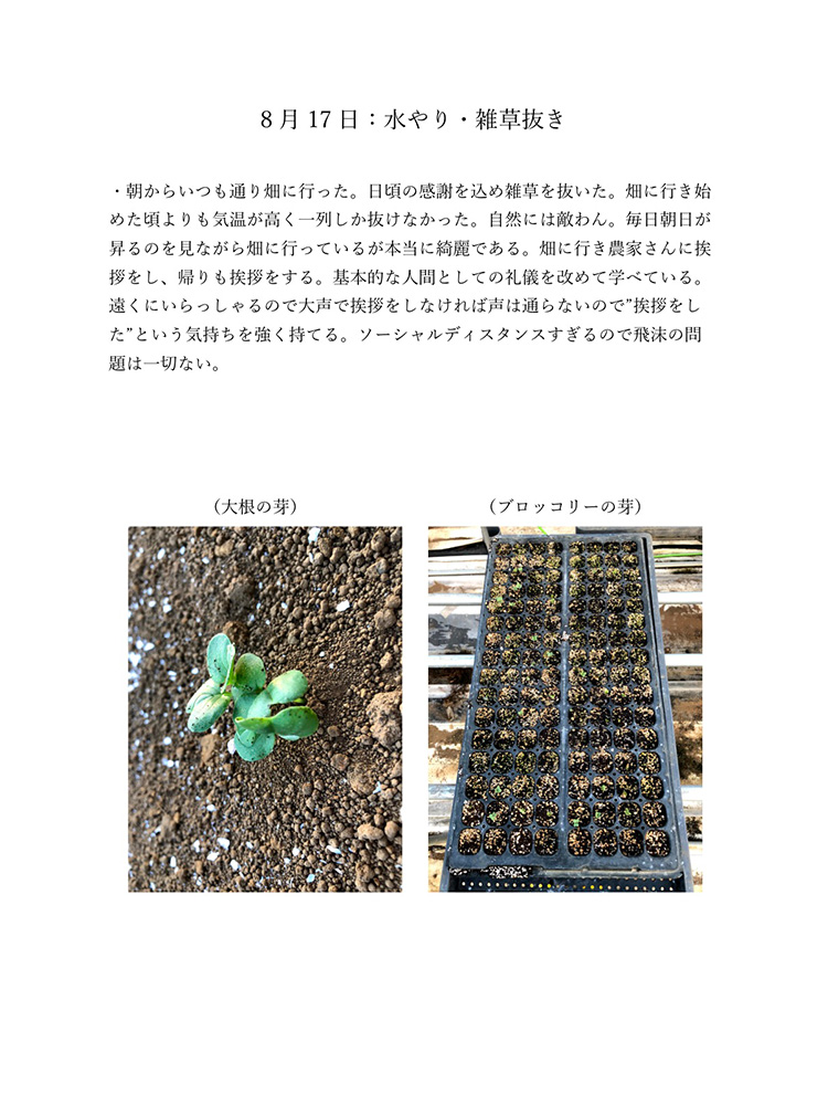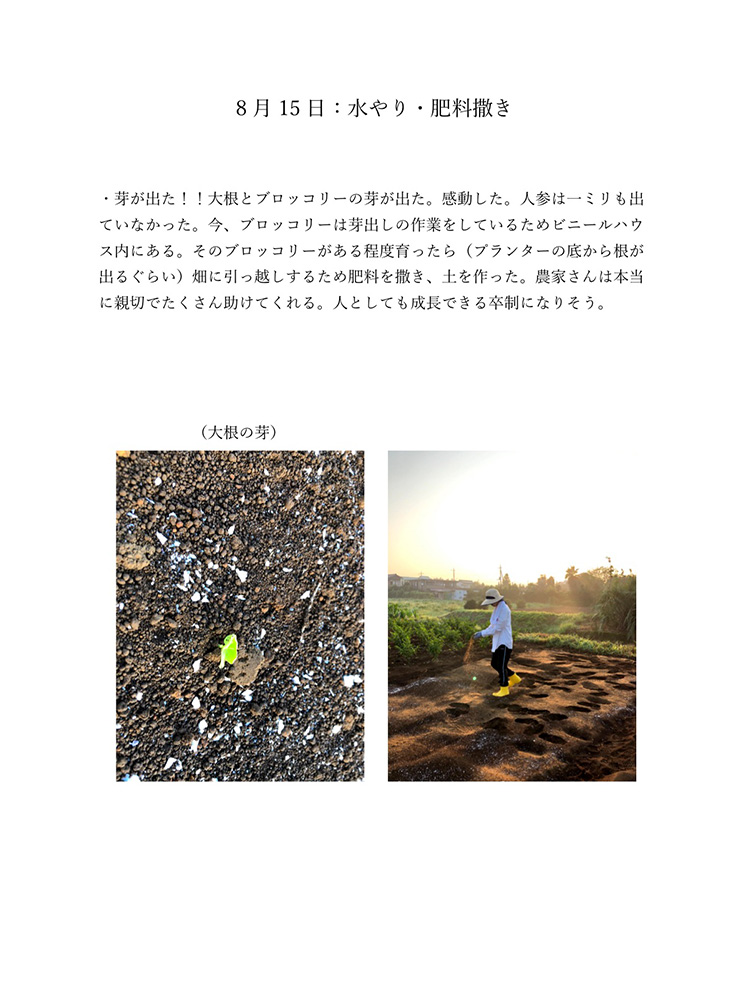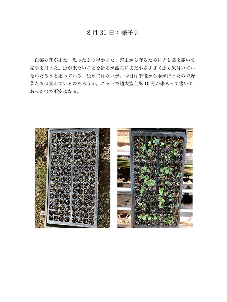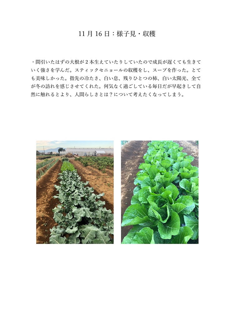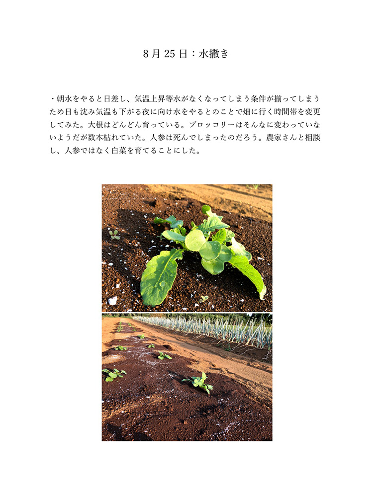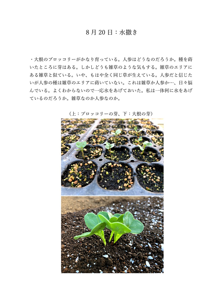 今のコロナの状況は自分たちが直面しているからわかることです。もし今後30年、40年こんな状況が続いたとしたら2020年のことは記憶の中で薄れていってしまい、この先話していても記憶は曖昧なものできっと、矛盾が生じてしまうと考えました。矛盾や記憶違いを生まないように今年の記録をしっかり残しておけば自分たちの思っていたことや体験を鮮明に思い出せます。今生きているからこそ知れる事実をテーマにし、2020年人々がどのような感情を抱いて生きたか、何をしたかなどを身近な人を対象にし、協力してもらい2020年の思い出ではなく人々の事実を記録しました。身近な人には過去との比較や死後の問題、私個人では衣食住の食にフォーカスするなど狭い範囲範囲ですが今年考えたことの事実として伝えることができると思います。事実を記録することにより2020年という怒涛の1年間を忘れることなく正しく人生に刻めるのではないかと考え作品にしました。